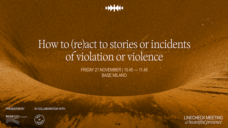 On 21 November, ECSA and Linecheck co-organise the panel “How to (re)act to stories or incidents of violation or violence” at Linecheck Music Meeting & Festival in Milan, Italy. During the panel, experts Zahra Mani (ECSA Vice-President, Austrian Composers), Samsaya Sampda Sharma (Co-Chair of ECSA Working Group on Diversity and Inclusion, NOPA), Aysha Hussain (Keychange), and Irene Tiberi (Equaly) will delve into the critical topic of how to react as a third party when experiencing discriminatory, coercive or bad behaviour. The key focus will be to develop effective responses to reported incidents of violence and to look into behavioural tools to facilitate de-escalation whilst addressing the problem at hand. The panel is co-funded by Creative Europe.